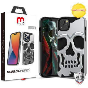 • MyBat Pro Skullcap Hybrid Protector Cover for Apple iPhone 14 Plus - Silver Plating / Black