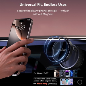 • Universal Compatibility: Works with all smartphones, including MagSafe iPhones and devices using metal ring accessories.