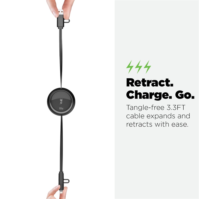 • Dual-Retractable Design – Both cable ends extend and retract smoothly for clean, tangle-free use and storage.
