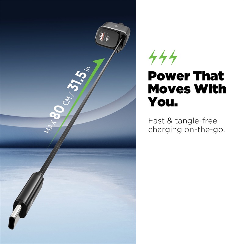 • Travel-Ready, Tangle-Free Design: Compact, retractable construction eliminates cable mess and keeps your dashboard clean.