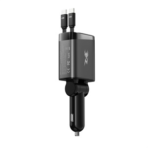 HOME:   Car Chargers->AmpNergy Speedemon 105+ Dual-Port Car Charger with Dual Retractable USB-C Cables - Black
