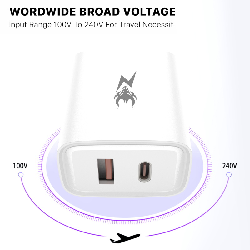 AmpNergy PowerSurge 12W Dual-Port Wall Charger (USB-C + USB-A) - White