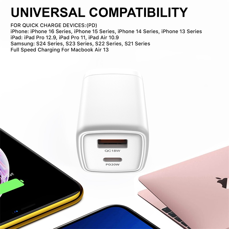 The PowerSurge 20 Fast Dual-Port Charger utilizes the latest technology in fast charging. It features a 20W USB-C Power Delivery and an 18W USB-A Quick port. Whether a customer's device supports fast charging or not, the Dual-Port Wall Charger charges two devices simultaneously at maximum output. You'll provide 4X the power of standard chargers and high-speed and efficient charging that will charge your customer’s smartphone or tablet from 0 to 50% in just 30 minutes! The charger discreetly fits into any outlet with an incredibly compact and lightweight design without cluttering or blocking access to precious ports.