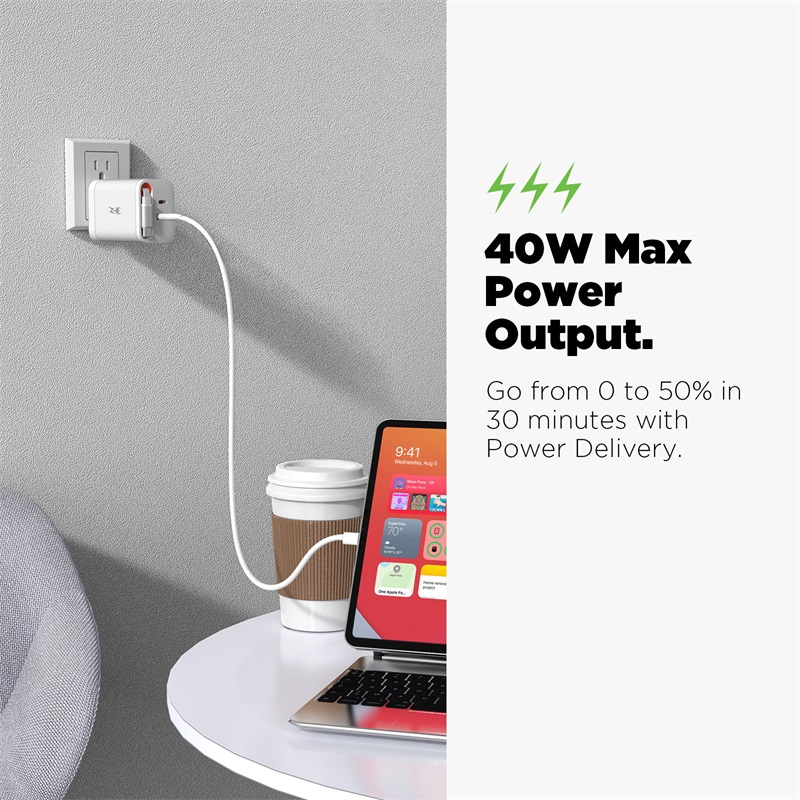 • 40W USB-C Power Delivery – Ultra-fast charging for laptops, tablets, and smartphones.