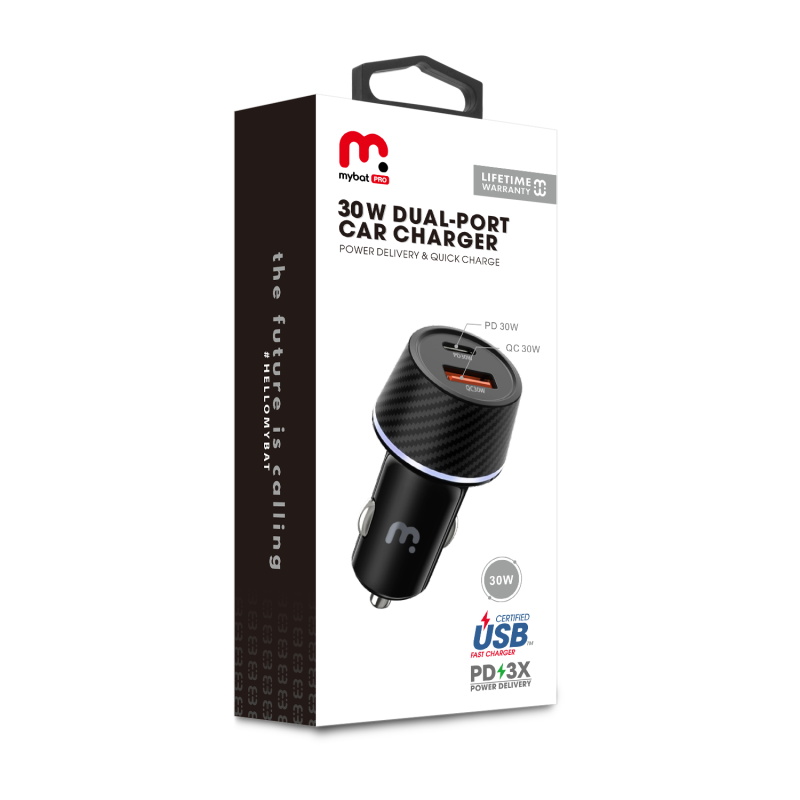 MyBat Pro Fast Charging Power Delivery Dual Port Car Charger (30W) - Black