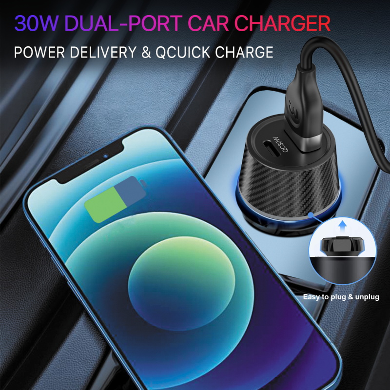 Designed to fit in any console, the high-performance dual-output car charger delivers up to 20W of rapid charging power to 2 of your customer's devices at once in a slim, low-profile design. Your customers will enjoy incredible fast-charging through powerful dual outputs enhanced with the latest fast charging technology, a 20W USB-C Power Delivery port, and a Quick Charge USB-A port. Regardless of whether your customer's device is fast charging or not, they will receive the maximum output possible. The charge can take your customers' smartphone or tablet, charge 4X faster than standard chargers, and go from 0 to 50% in only 30 minutes!