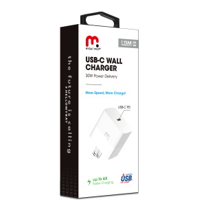 Give your customers the next level of high-speed charging to provide them with revolutionary power for any device with the 30W USB-C Power Delivery Wall Charger from MyBat Pro. It is available in attractive packaging that makes it stand out on the shelf and shows off the product beautifully, making it an ideal addition to your inventory.