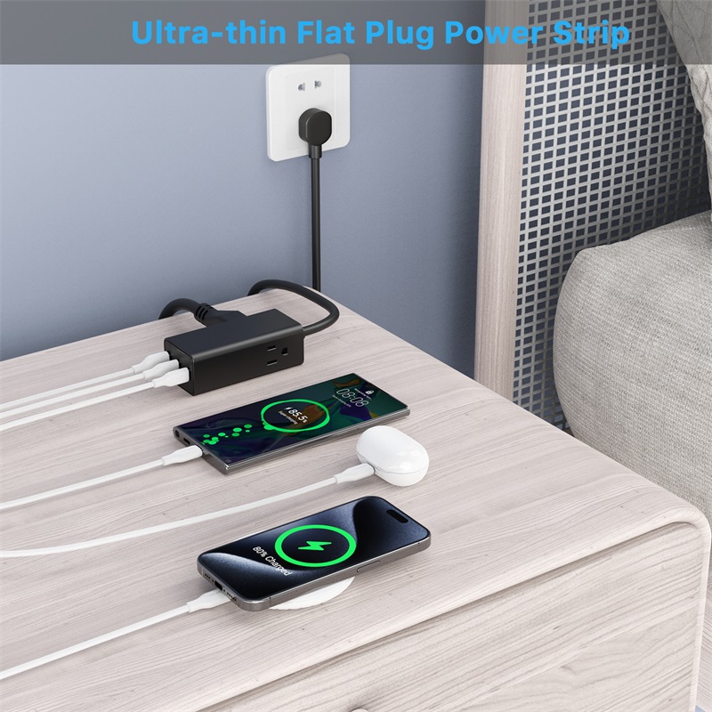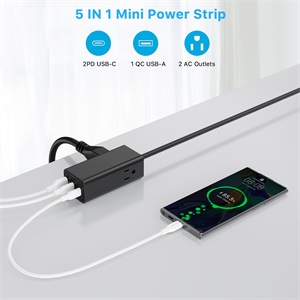 • 5-IN-1 USB C Power Strip for Dorm room,Home, Office, Travel