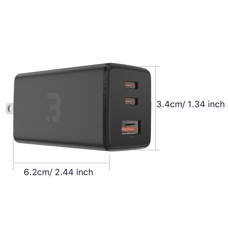 HOME:   Wall Chargers->MyBat Pro 67W GaN Three-Port Wall Charger - Black