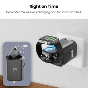 • Smartwatch Charging Pad – Integrated wireless charger powers compatible smartwatches without carrying extra adapters.