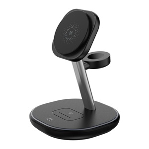 Power up without limits — MagStance 3-in-1 Wireless Charging Stand is designed to keep your essentials fully charged and always within view. Featuring 15W MagSafe fast charging, it lets you snap, charge, and rotate between portrait and landscape mode, so you can stream, scroll, and video call hands-free without interrupting your charge. The LED-lit base delivers 5W power to your earbuds and 2.5W to your smartwatch, ensuring all your devices stay powered in one sleek, clutter-free setup. With strong magnetic stability, 360° adjustability, and a premium design, this stand is built for those who never slow down.