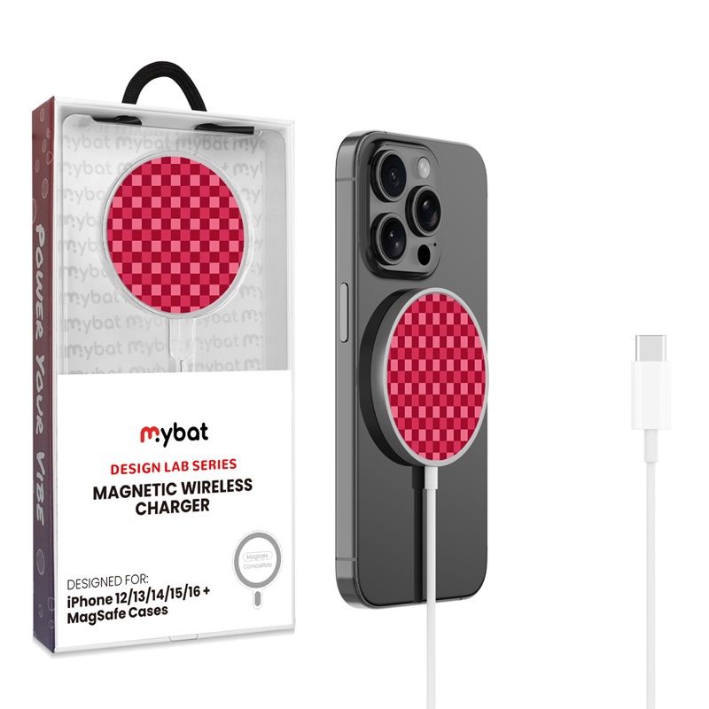 MyBat Design Lab Magnetic Wireless Charger - Silver - Raspberry Check