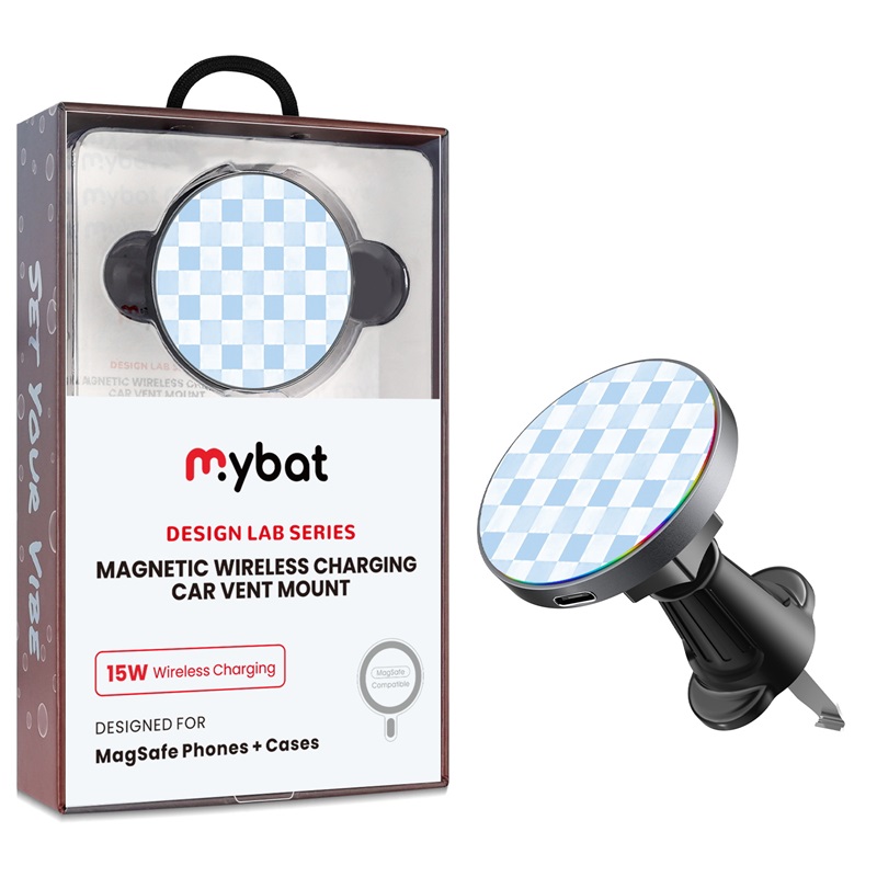 MyBat Design Lab Magnetic Wireless Charging Vent Mount - Black - Sky Blue Check