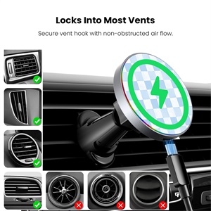 HOME:   Wireless Chargers->MyBat Design Lab Magnetic Wireless Charging Vent Mount - Black - Sky Blue Check