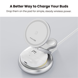 • Qi-Compatible Earbud Pad – Provides convenient charging for wireless earbuds or cases.
