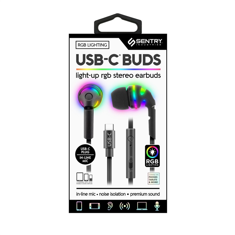 HOME:   Earbuds->Sentry Light-Up USB-C Wired Ear Buds - RGB