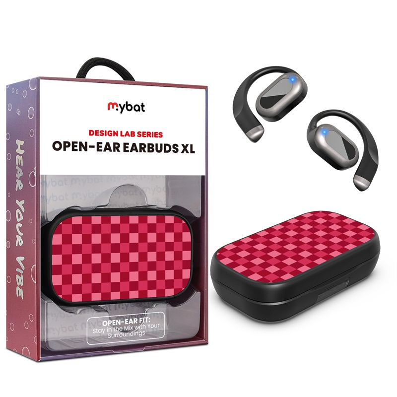 MyBat Design Lab Open-Ear Earbuds XL - Black - Raspberry Check