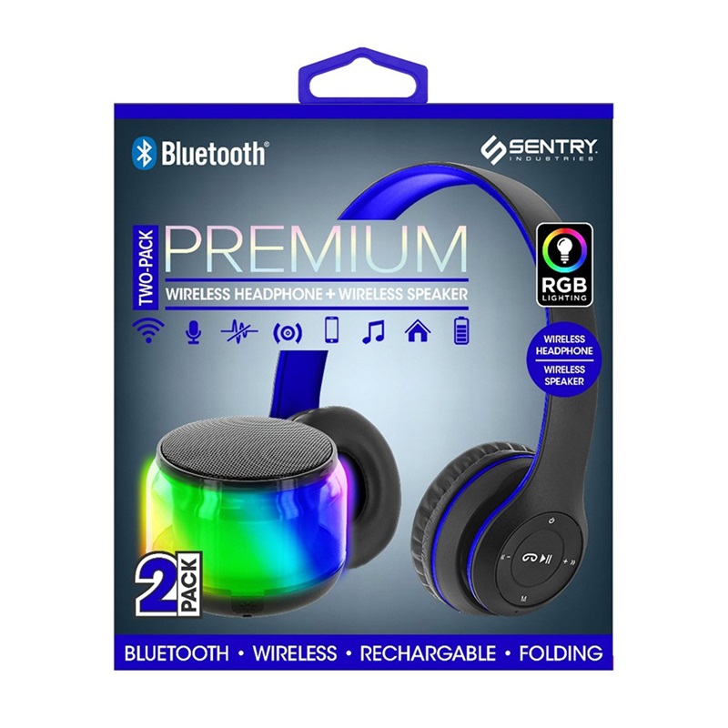 Sentry Light-Up RGB Bluetooth Speaker & Headphones Combo Pack - Blue RGB