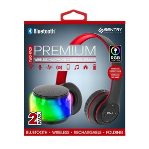 Sentry Light-Up RGB Bluetooth Speaker & Headphones Combo Pack - Red RGB