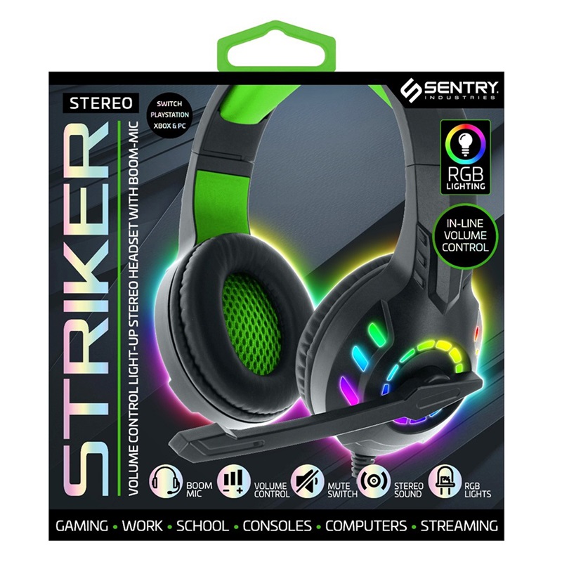 HOME:   Headphones->Sentry Light-Up RGB Universal Gaming Headphones - Green RGB