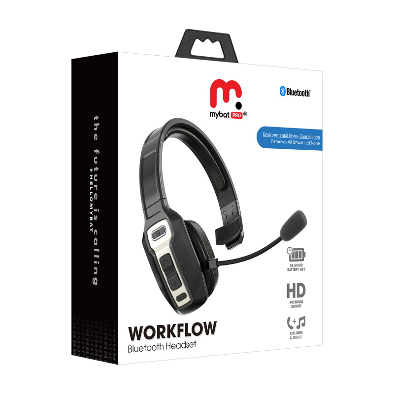 MyBat Pro WorkFlow Wireless Headset with Noise Cancelling Microphone - Black