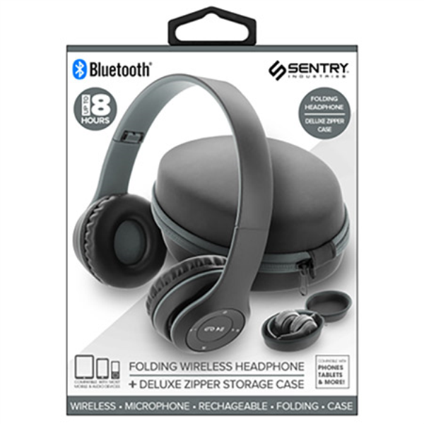 Sentry Bluetooth Heaphones with Zipper Carrying Case - BLACK