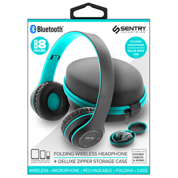 Sentry Bluetooth Heaphones with Zipper Carrying Case - TEAL