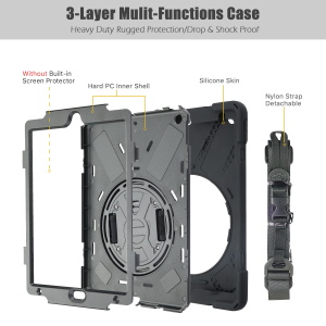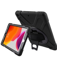 | Provide your customers with a case that revolves around their iPad 10.2 (2021) and have them grab the black TurnTablet Xtra Grip Series Tablet Case from MyBat to go worry-free as they work, relax, and more! It is available in attractive packaging that makes it stand out on the shelf and shows off the product beautifully, making it an ideal addition to your inventory. The black TurnTablet Xtra Grip Series Tablet Case covers your customer’s iPad 10.2 (2021) with an innovative triple-layer design of a solid two-piece hard polycarbonate inner casing and a padded black silicone outer shell for 3X the durability of standard tablet cases. The case provides edge-to-edge coverage from accidental falls, drops, scratches, and more with raised bezel edges and rounded shock-absorbing corners. The 360° rotating hand-grip on the back provides seamless portability, easy carrying, and a secure view in either portrait or landscape. In addition to its hand grip, the black TurnTablet Xtra Grip features a collapsible kickstand that allows customers to watch shows, make video calls, type, and draw comfortably while on the go! Its ultra-slim, and lightweight design makes it easy to access the iPad 10.2 (2021)'s screen, buttons, and ports regardless of how it is held or viewed. As an added bonus, your customers will be able to travel with ease and keep their iPad 10.2 (2021) safe with the detachable nylon strap and buckles! For quick assembly and removal of the case, a handy pen tool is included to make it easier than ever! MyBat offers a limited one-year warranty for the TurnTablet Xtra Grip Series Tablet Case for iPad 10.2 (2021), ensuring the best quality, performance, and customer satisfaction. |