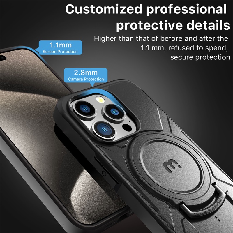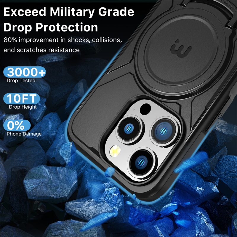 Amidst life's rigors, the Stealth Series MagSafe Case becomes an impervious protector for your customers' iPhone 15 Pro (6.1) , boasting twice the durability of regular cases with its fortified polycarbonate exterior and padded TPU interior. Elevated by rounded corners and raised edges, it excels in defense, fortified by a military-grade, 12-foot drop protection. Easy access to ports and buttons is guaranteed, thanks to its ergonomic design.