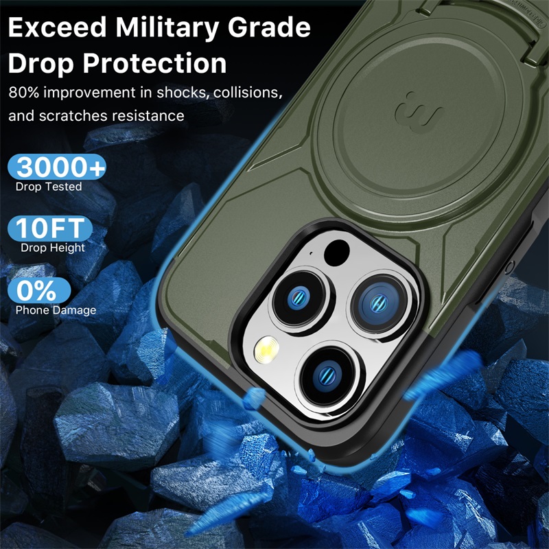 Amidst life's rigors, the Stealth Series MagSafe Case becomes an impervious protector for your customers' iPhone 15 Pro (6.1) , boasting twice the durability of regular cases with its fortified polycarbonate exterior and padded TPU interior. Elevated by rounded corners and raised edges, it excels in defense, fortified by a military-grade, 12-foot drop protection. Easy access to ports and buttons is guaranteed, thanks to its ergonomic design.