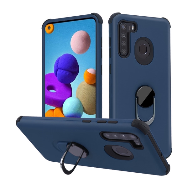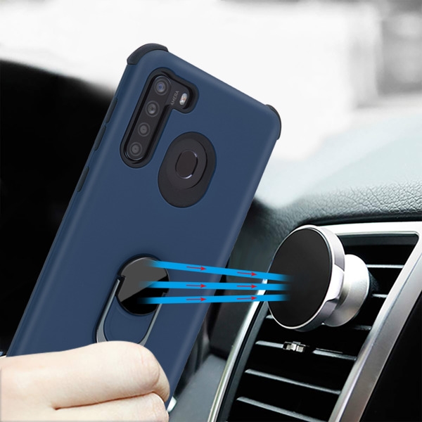 Asmyna Rubberized Hybrid Case (with Ring Stand) for Samsung Galaxy A21 - Ink Blue / Black
