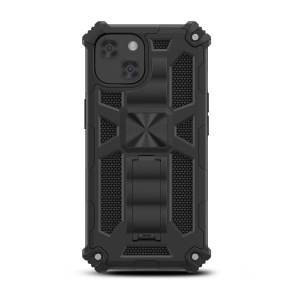 MyBat Sturdy Hybrid Protector Cover (with Stand) for Apple iPhone 15 - Black / Black