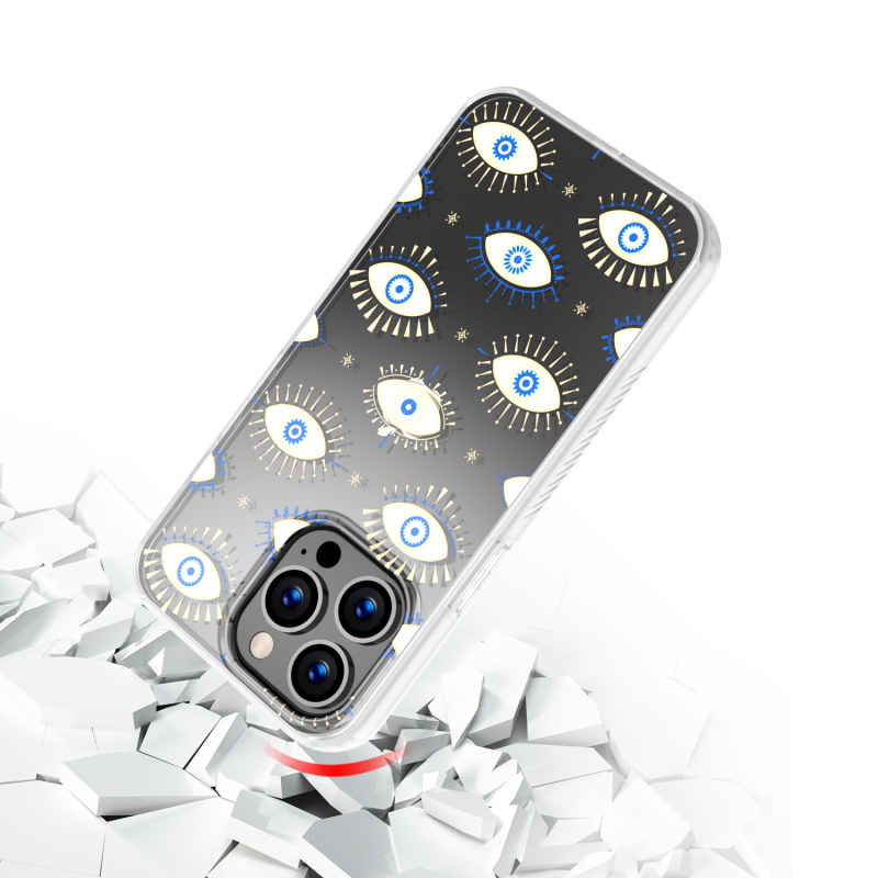 The Evil Eye Mood Series iPhone 13 Pro Case shows your customer's unique personality while matching their outfits, backpacks, bags, and great sense of style! The elegant and fashionable Mood Series iPhone 13 Pro Case features raised bezel edges and anti-shock corners for maximum protection from falls, scratches, and cracks while being compact for easy access to all ports and buttons. The ultra-slim and lightweight design ensure your customers don't have to remove the case every time they need to recharge! Crafted from premium fingerprint-resistant materials, smudges, grease, and dirt will never out style your customer’s Mood Series iPhone 13 Pro Case.