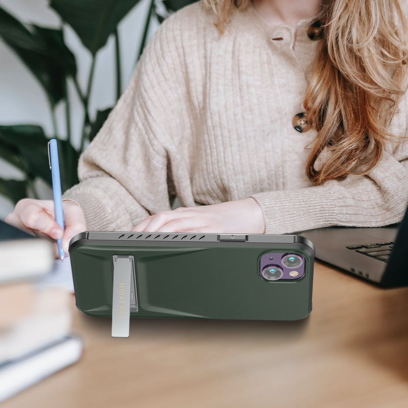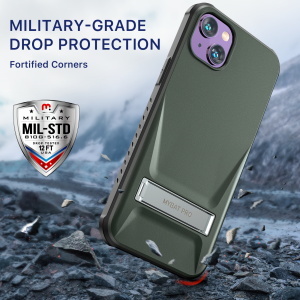 MyBat Pro Beyonder Series Case with Tempered Glass with Kickstand for Apple iPhone 14 Plus - Blackish Green