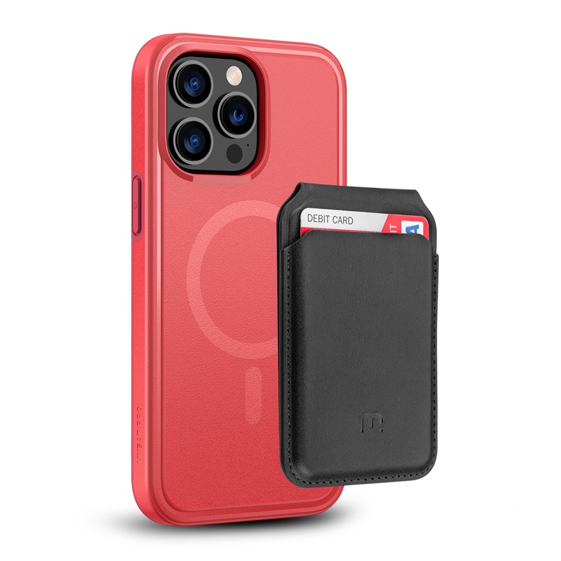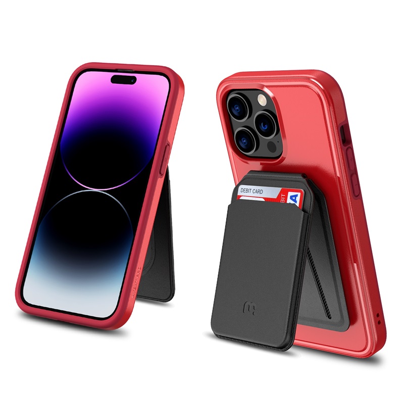 MyBat Pro Fuse Series Case Bundle + MagStash Wallet Folio for Apple iPhone 14 Pro Max - Red / Black