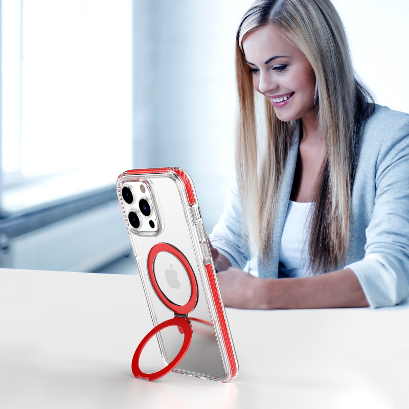 Featuring an attractive clear design and a potent +AttachMe ring, this case effortlessly attaches to MagSafe chargers and mounts, ensuring a seamless and efficient charging experience for your valued customers.