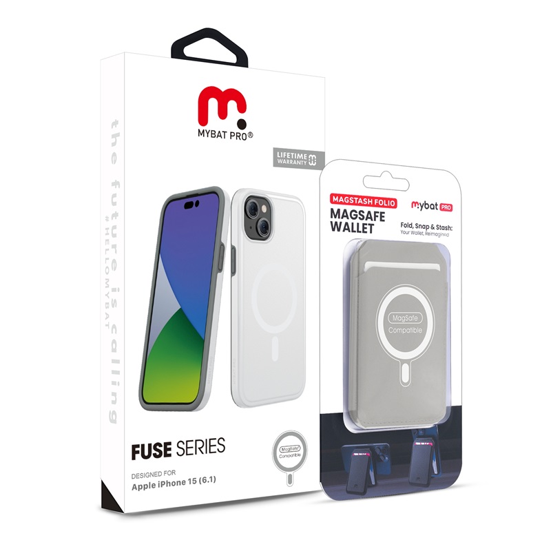 HOME:   Apple -> iPhone 15 -> Phone Cases->MyBat Pro Fuse Series Case Bundle + MagStash Wallet Folio for Apple iPhone 15 - White / Gray