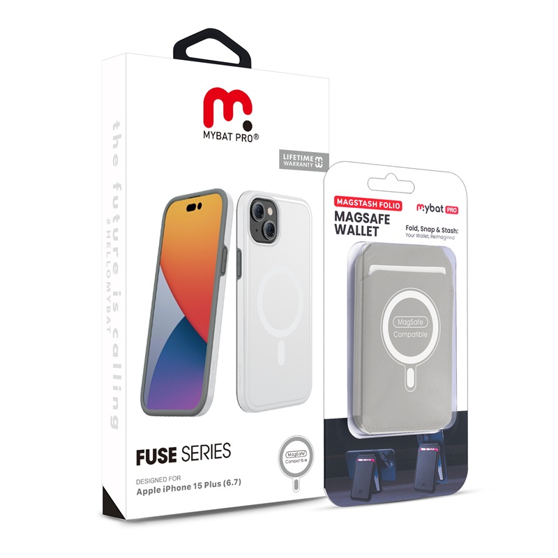 HOME:   Apple -> iPhone 15 Plus -> Phone Cases->MyBat Pro Fuse Series Case Bundle + MagStash Wallet Folio for Apple iPhone 15 Plus - White / Gray