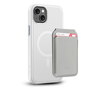 MyBat Pro Fuse Series Case Bundle + MagStash Wallet Folio for Apple iPhone 15 Plus - White / Gray