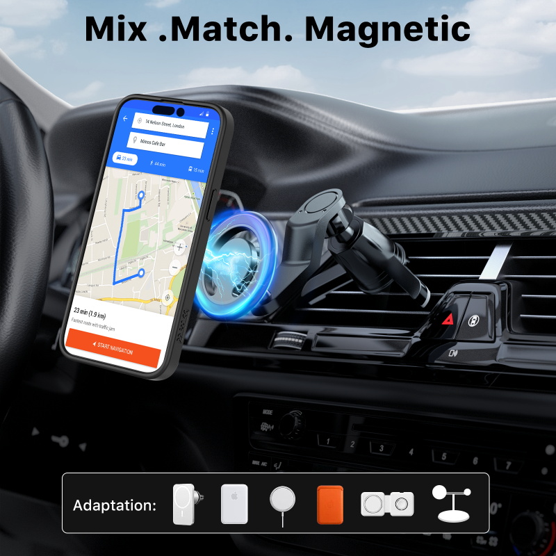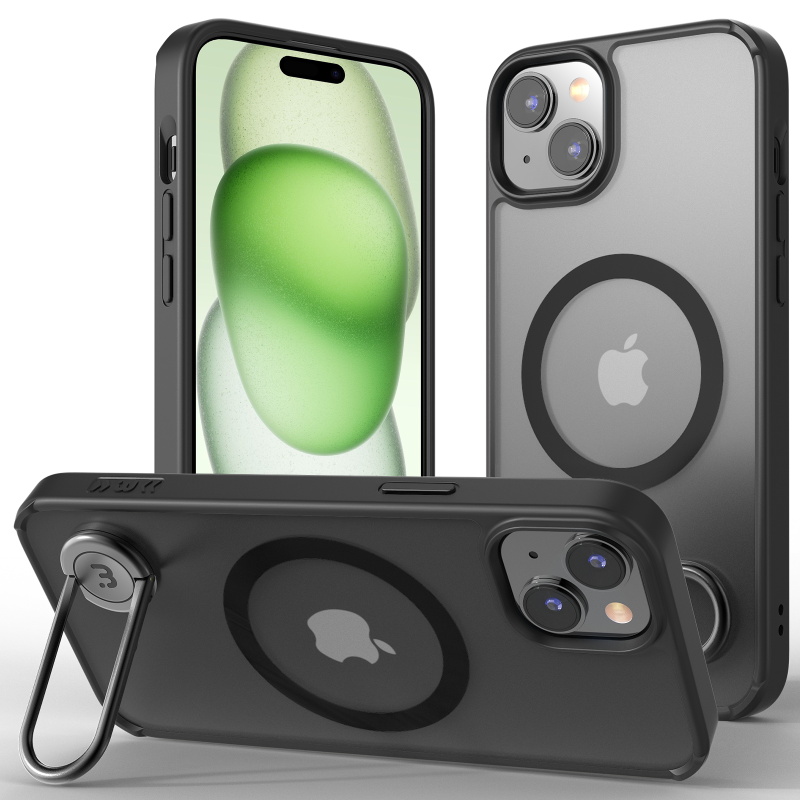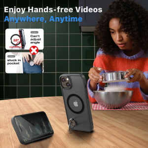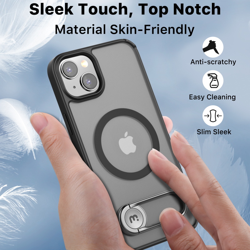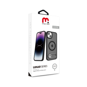 This premium phone case boasts a noir black frosted look with a subtle touch of lunar gray, making it the perfect combination of style and functionality. The 360-degree rotatable silver metal kickstand doubles as a finger hook or can be clipped onto a carabiner for hands-free convenience. And with the +AttachMe ring, you can easily attach your phone to MagSafe chargers and mounts. The kickstand also allows for easy viewing in portrait or landscape mode, making it perfect for watching videos, making video calls, or using your phone hands-free. The Lunar Series Magsafe Case offers certified military-grade protection and a non-slip textured grip, ensuring that their iPhone 15 Plus (6.7) stays safe from scratches, bumps, and drops. Stock up on the Lunar Series MagSafe Phone Case today and give your customers the protection and style they deserve!