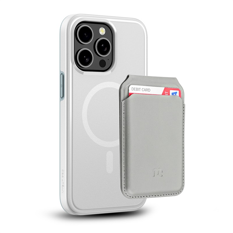 MyBat Pro Fuse Series Case Bundle + MagStash Wallet Folio for Apple iPhone 15 Pro - White / Gray
