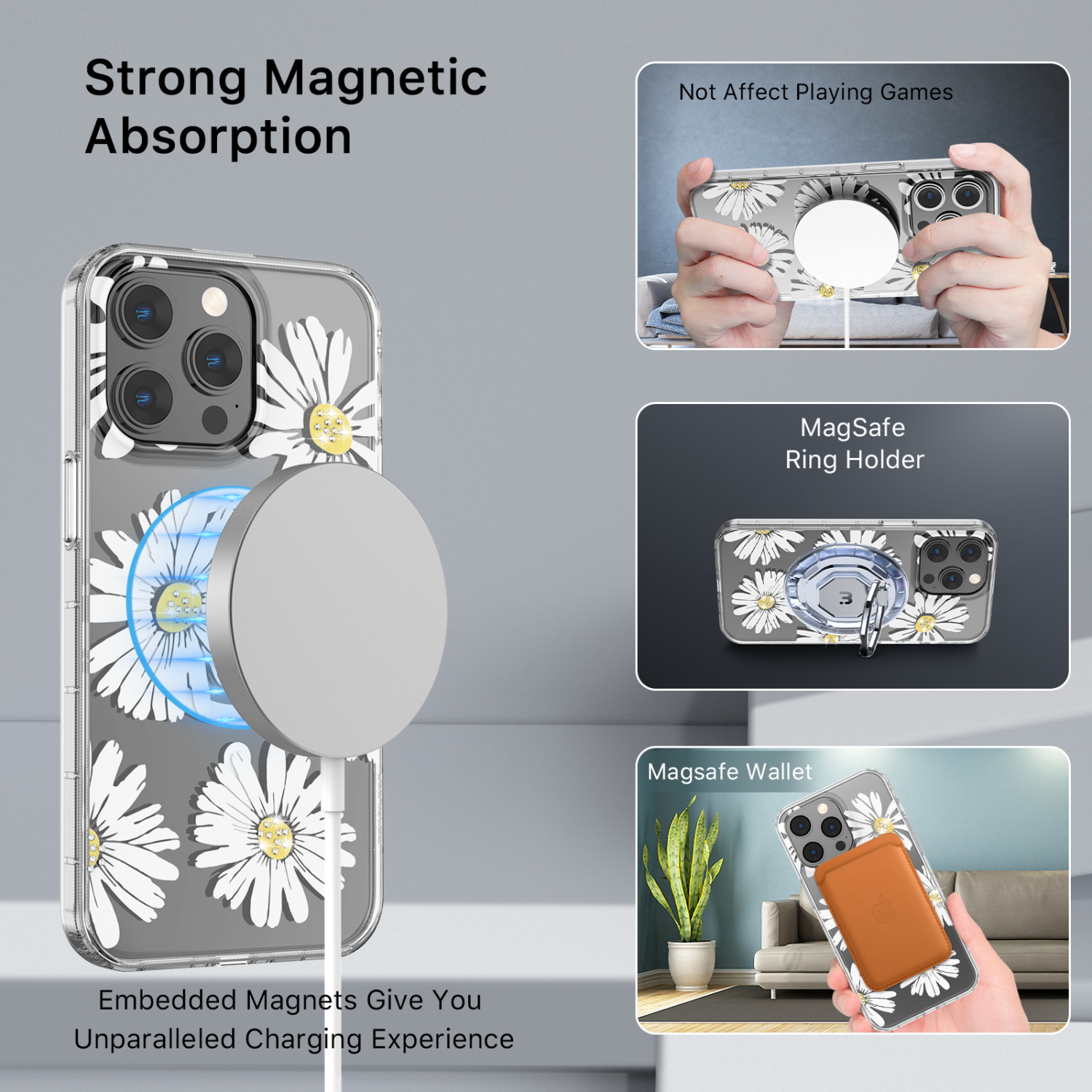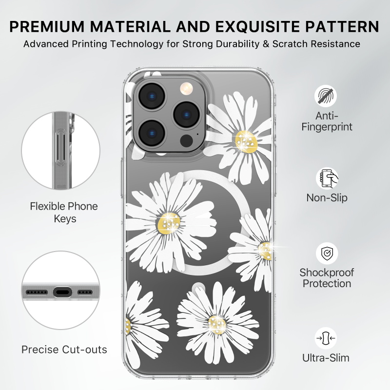 HOME:   Apple -> iPhone 15 Pro -> Phone Cases->MyBat Pro Mood Series MagSafe Case (with Diamonds) for Apple iPhone 15 Pro - Happy Daisies
