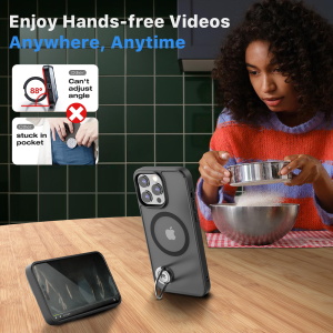 This premium phone case boasts a noir black frosted look with a subtle touch of lunar gray, making it the perfect combination of style and functionality. The 360-degree rotatable silver metal kickstand doubles as a finger hook or can be clipped onto a carabiner for hands-free convenience. And with the +AttachMe ring, you can easily attach your phone to MagSafe chargers and mounts. The kickstand also allows for easy viewing in portrait or landscape mode, making it perfect for watching videos, making video calls, or using your phone hands-free. The Lunar Series Magsafe Case offers certified military-grade protection and a non-slip textured grip, ensuring that their iPhone 15 Pro (6.1) stays safe from scratches, bumps, and drops. Stock up on the Lunar Series MagSafe Phone Case today and give your customers the protection and style they deserve!