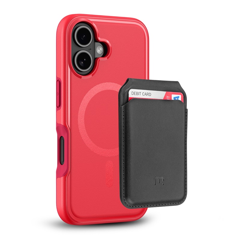 MyBat Pro Fuse Series Case Bundle + MagStash Wallet Folio for Apple iPhone 16 - Red / Black