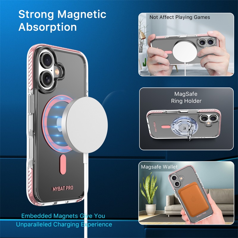 Vivid Series MagSafe Case for  iPhone 16 amplifies clarity and vibrance and all around protection. This crystal-clear case, adorned with meticulously designed black textured non-slip bumpers, seamlessly combines style with practicality. The +AttachMe ring in silver facilitates rapid attachment to MagSafe chargers and mounts, ensuring effortless functionality. Certified military-grade protection envelops your customer’s  iPhone 16, guarding it against scratches, bumps, and drops while allowing its vivid allure to shine through. Elevate your product offering with the Vivid Series MagSafe Case, where protection meets sheer elegance.