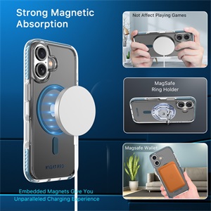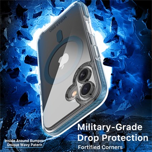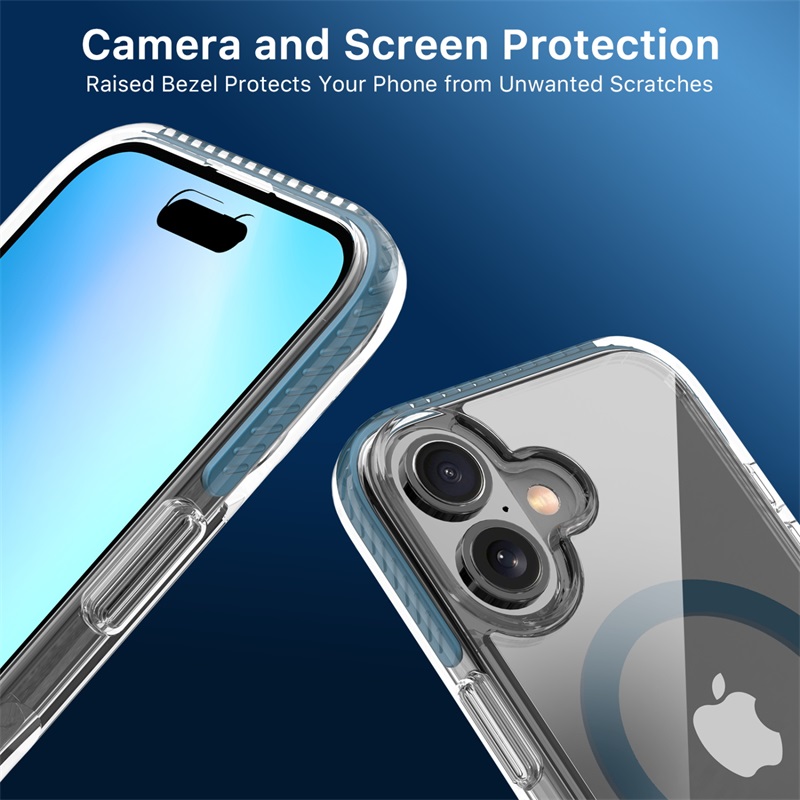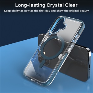 Vivid Series MagSafe Case for  iPhone 16 amplifies clarity and vibrance and all around protection. This crystal-clear case, adorned with meticulously designed black textured non-slip bumpers, seamlessly combines style with practicality. The +AttachMe ring in silver facilitates rapid attachment to MagSafe chargers and mounts, ensuring effortless functionality. Certified military-grade protection envelops your customer’s  iPhone 16, guarding it against scratches, bumps, and drops while allowing its vivid allure to shine through. Elevate your product offering with the Vivid Series MagSafe Case, where protection meets sheer elegance.