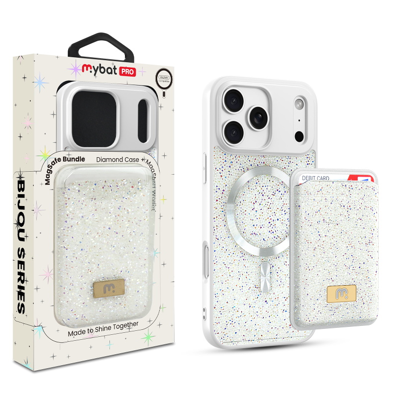 HOME:   Apple -> iPhone 17 Pro -> Phone Cases->MyBat Pro Bijou Series MagSafe Bundle with Diamond Case + MagStash Wallet for Apple iPhone 17 Pro - Pearl White