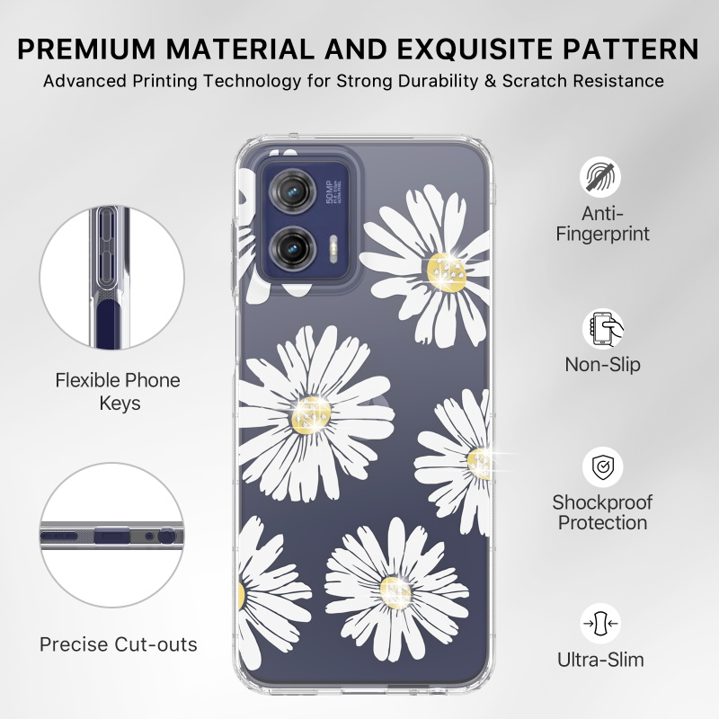 The Happy Daisies Mood Diamond Series Moto G 5G (2023) Case shows your customer's elegant personality while matching their outfits, backpacks, bags, and great sense of style! The luxurious and chic Mood Diamond Series Moto G 5G (2023) Case features raised bezel edges and anti-shock corners for maximum protection from falls, scratches, and cracks while being compact for easy access to all ports and buttons. The ultra-slim and lightweight design ensure your customers don't have to remove the case every time they need to recharge! Crafted from premium fingerprint-resistant materials, smudges, grease, and dirt will never out style your customer’s Mood Diamond Series Moto G 5G (2023) Case.
