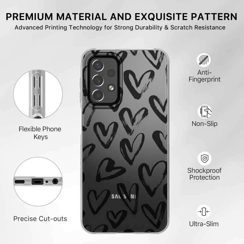 The Black Hearts Mood Series Galaxy A23 5G Case shows your customer's unique personality while matching their outfits, backpacks, bags, and great sense of style! The elegant and fashionable Mood Series Galaxy A23 5G Case features raised bezel edges and anti-shock corners for maximum protection from falls, scratches, and cracks while being compact for easy access to all ports and buttons. The ultra-slim and lightweight design ensure your customers don't have to remove the case every time they need to recharge! Crafted from premium fingerprint-resistant materials, smudges, grease, and dirt will never out style your customer’s Mood Series Galaxy A23 5G Case.