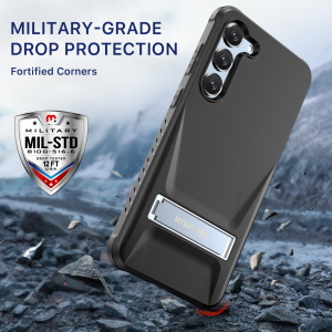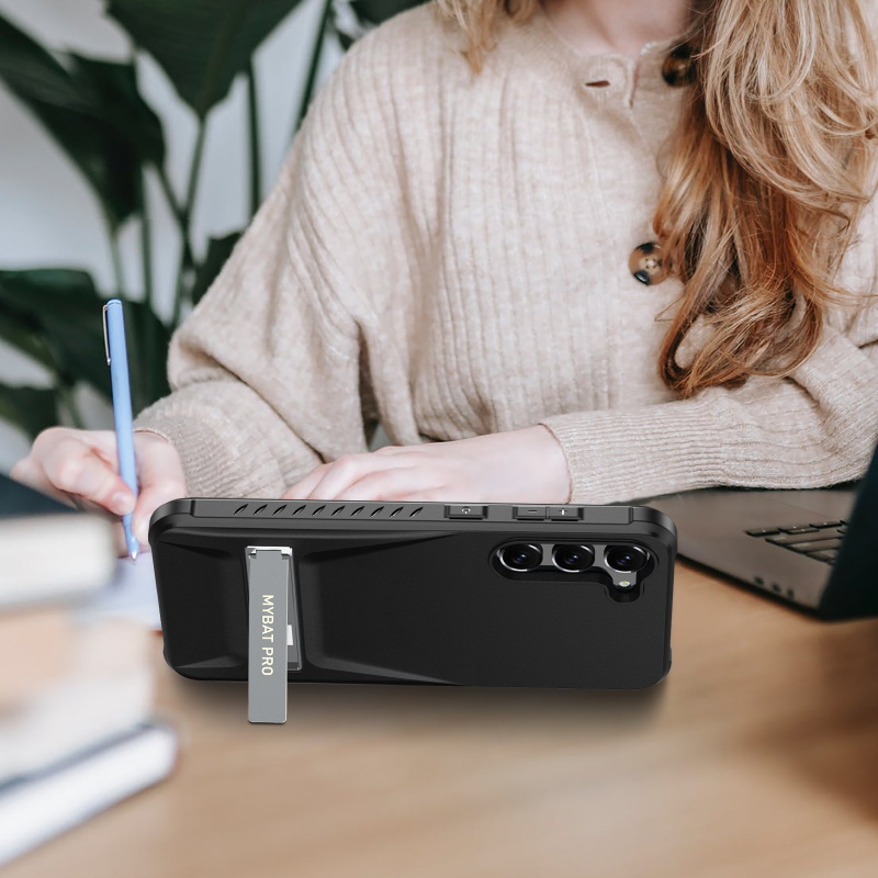 EMBEDDED ULTRA SLIM KICKSTAND-This Samsung Galaxy case with stand can be adjusted to 75°(maximum to 65mm wide) to stand horizontally stablely to meet a variety of life and work scenarios. It offers the most optimal viewing points to watch films and alleviates your neck, wrist pain, definitely the go-to for long-sit office workers.